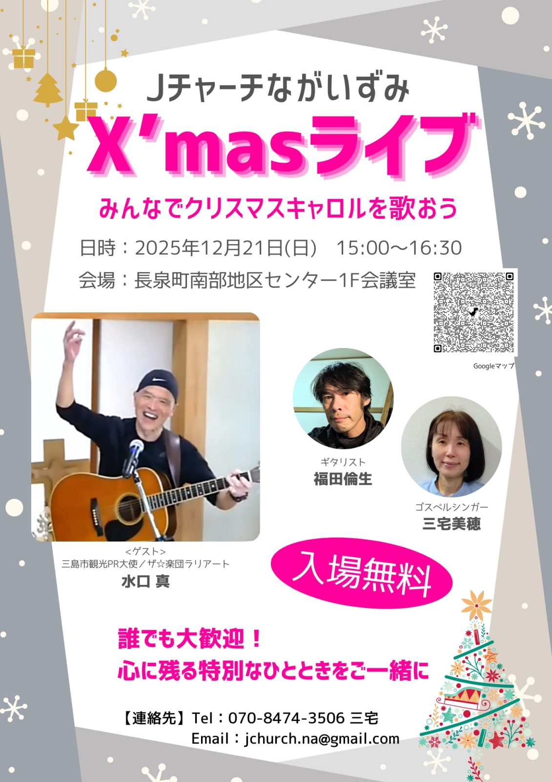 ギタリスト福田倫生&牧師の三宅美穂とジョイントでクリスマスライブを開催します!